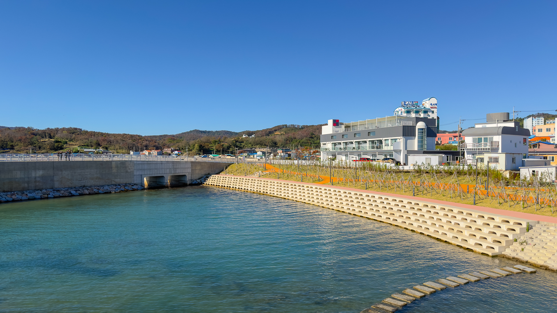 펜션 바로 앞에 해상공원이 있어 아름다운 오션뷰를 감상하며 산책을 즐길 수 있습니다.
